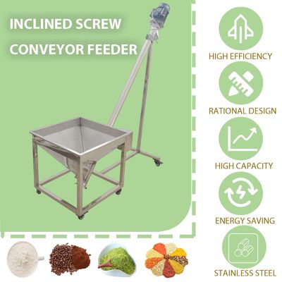 oem Incline Auger Screw Conveyor Industrial Helical Hopper Spiral Powder Feeder 750W Stainless Steel 441-661 lb/min Spring Loader 220V 1PH