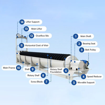 เครื่องล้างทรายซิลิก้าแบบสไพร่ลวดสําหรับโรงงานก่อสร้าง โครงการทางหลวง โรงงานพลังงานน้ํา และการดําเนินงานทรายและหินหินที่มีความต้องการการลงทุนต่ํา