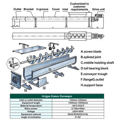 ผู้ผลิตสกรูลำเลียงแบบ U-type แบบมีเพลาทำจากสแตนเลสและเหล็กคาร์บอนแบบกำหนดเอง และสายพานลำเลียงแบบไม่มีเพลาทำจากสแตนเลสสำหรับการใช้งานในอุตสาหกรรม