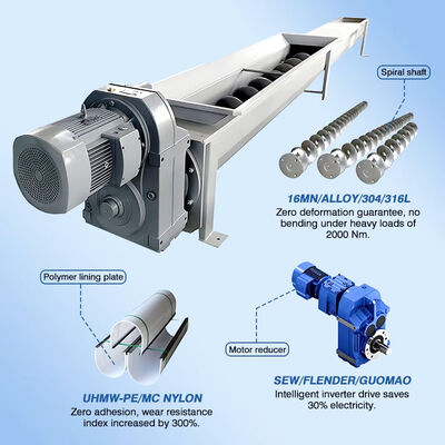 เครื่องขนส่งสกรูอูเกอร์ที่ทนความร้อนจากสแตนเลสที่สามารถปรับแต่งได้ สําหรับการใช้งานในอุตสาหกรรม